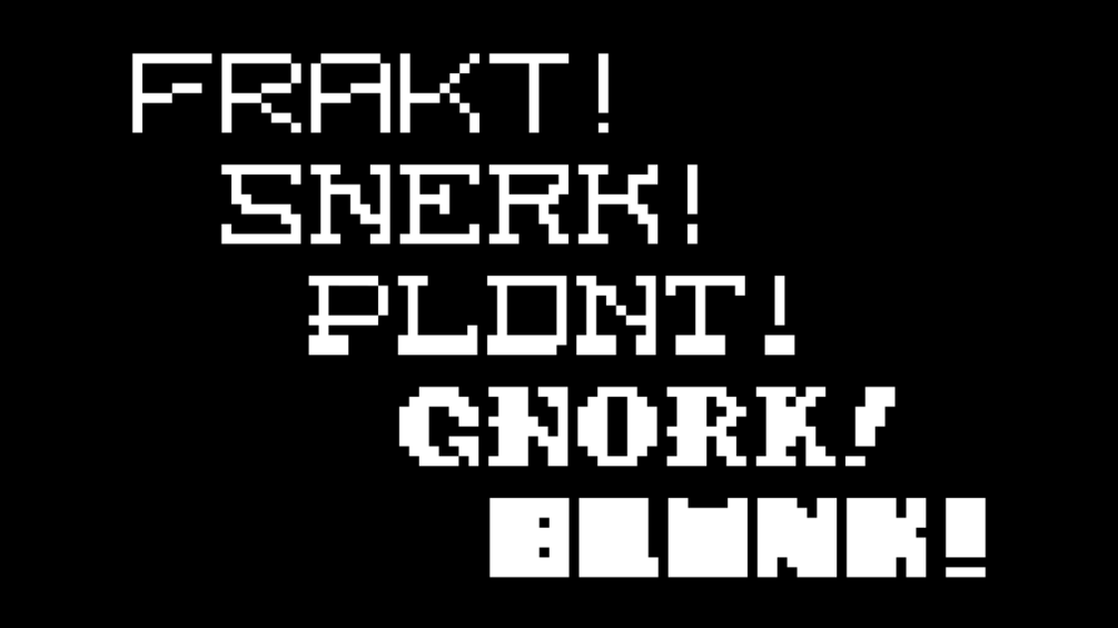 Alternative text: The Frakt font, with a stroke, placed over the Blunk font to create a complex, tesselated pattern of cryptic glyphs