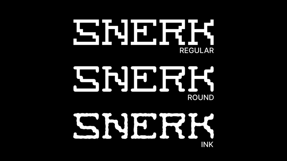 Snerk is an 8-bit pixel font with a generous character set. Alongside the regular font are the distinctly unpixelated Round and Ink variants. All variants share the same metrics and can be used interchangeably.